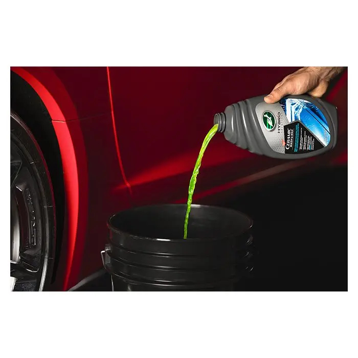 Turtle Wax Hybrid Solutions Ceramic Wash & Wax er en avanceret bilshampoo, der kombinerer keramisk beskyttelse og voks i én effektiv løsning. Den er beriget med Hydro-Glide vaskepolymerer, som sikrer en skånsom og ridsefri rengøring på alle typer overflader.