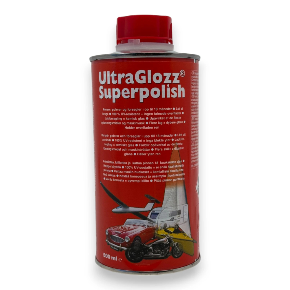 Ultraglozz Superpolish er et poleringsmiddel, der bruges til at forbedre glansen og udseendet af overflader, især inden for bilpleje. Produktet er designet til at fjerne små ridser, oxidation og andre ufuldkommenheder fra lak og malede overflader.Det indeholder typisk slibemidler og polermidler, der hjælper med at skabe en glat og skinnende finish. Ultraglozz Superpolish kan anvendes på forskellige materialer, herunder lak, plastik og metal, hvilket gør det til en alsidig løsning for både hobbyister og professionelle.