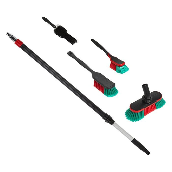 1x Autobørste med langt skaft– Bløde, spaltede børstehår for skånsom rengøring. - **Universel autobørste** – Perfekt til små områder. -