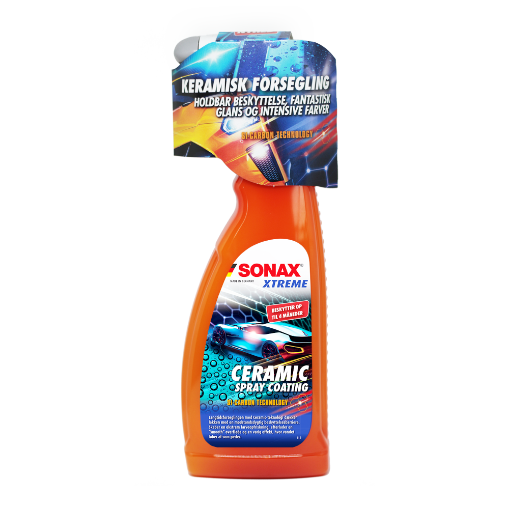 Sonax Xtreme Ceramic Spray Coating forsegler og beskytter lakken mod snavs, insekter osv. Dette gør bilen nemmere at vaske helt ren uanset om du vasker selv, eller kører i vaskehal.